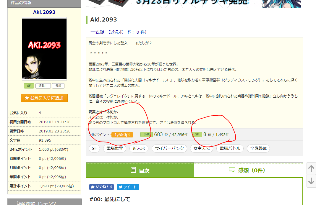 アルファポリスにて「Aki.2093」が1500ポイントオーバー!